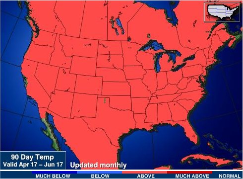 Já nas previsões dos próximos 90 dias, as chuvas deverão ficar dentro da média, intervalo onde as temperaturas ainda deverão ficar acima da média para a época do ano.