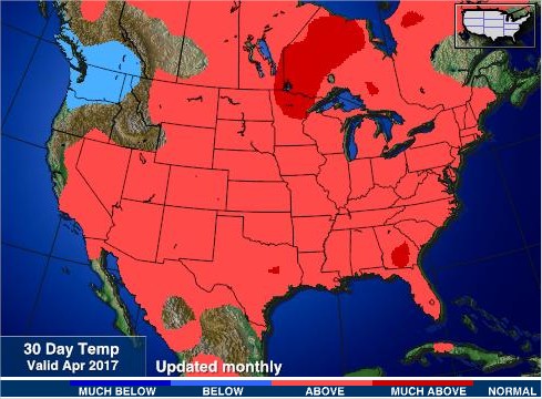 Nas previsões para os próximos 30 dias, as chuvas aparecem menos frequentes e menos intensas no Meio-Oeste americando, podendo, inclusive, ficar abaixo do normal para esta época do ano em partes de Iowa Missouri, Illinois, Indiana e Arkansas. No mesmo período, as temperaturas deverão ficar acima da média em todo o Corn Belt. Os mapas a seguir são da AgWeb.