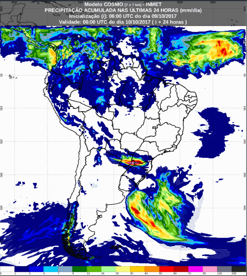 Veja o mapa de precipitação acumulada de 12/10 a 16/10 para todo o Brasil:
