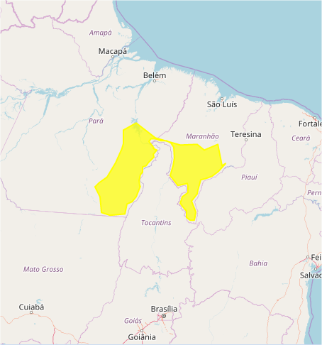 "Chuva entre 20 e 30 mm/h ou até 50 mm/dia, ventos intensos (40-60 Km/h). Baixo risco de corte de energia elétrica, queda de galhos de árvores, alagamentos e de descargas elétricas", disse o instituto em nota. O aviso vai até às 10h desta quinta-feira e vale para as áreas do Sudeste Paraense, Oeste Maranhense, Leste Maranhense, Sul Maranhense, Centro Maranhense e Norte Tocantinense.