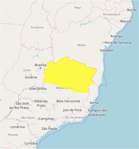 Aviso para as áreas: Vale Do Mucuri, Central Mineira, Vale Do Rio Doce, Jequitinhonha, Metropolitana De Belo Horizonte, Norte Mineiro, Noroeste Mineiro