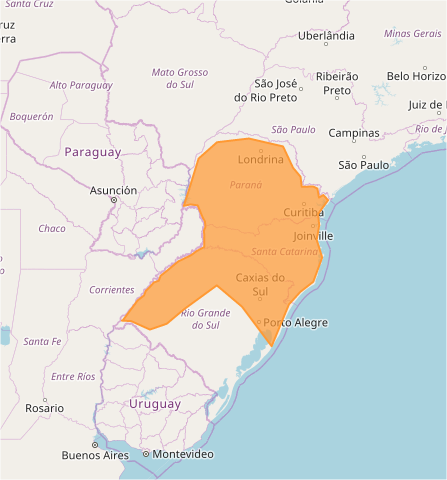 Aviso para as áreas: Planalto Norte Catarinense, Campanha, Metropolitana De Curitiba, Oeste Catarinense, Vale Do Itajai, Grande Florianópolis, Planalto Sul Catarinense, Litoral Sul Catarinense, Depressão Central, Encosta Inferior Do Nordeste, Encosta Superior Do Nordeste, Campos De Cima Da Serra, Planalto Médio, Missões, Alto Uruguai, Central Paranaense, Litoral Paranaense, Norte Paranaense, Oeste Paranaense, Sudoeste Paranaense, Sul Paranaense, Litoral Gaúcho, Meio-Oeste Catarinense, Litoral Norte Catarinense