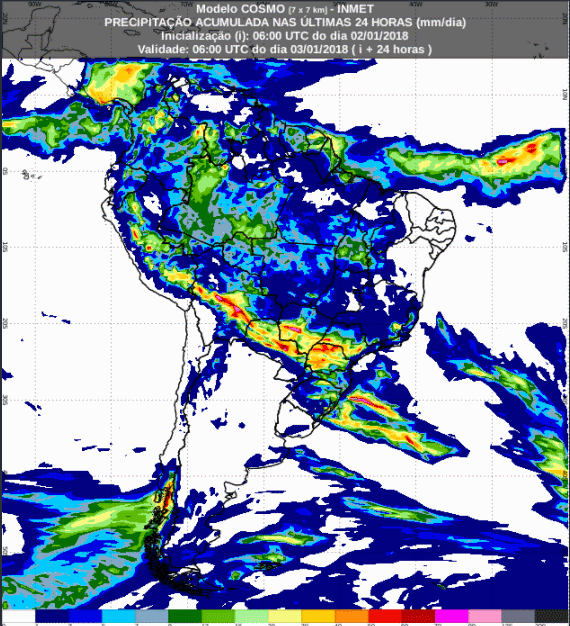 O ano de 2018 começa com alerta de continuidade das chuvas fortes na região Sul do Brasil. As instabilidades são causadas por uma área de baixa pressão atmosférica entre o Paraguai e Norte da Argentina, segundo a Climatempo. A Emater/RS destaca que as precipitações têm favorecido o desenvolvimento da safra.