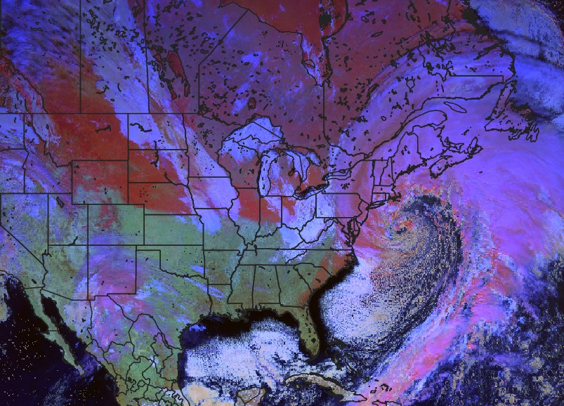 Atuação do Ciclone Bomba sobre a Costa Leste dos Estados Unidos. Imagem enviada por Expedito Rebello, meterologista do Inmet