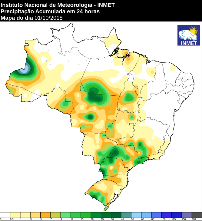 Veja o mapa das áreas com precipitação acumulada nas últimas 24 horas: