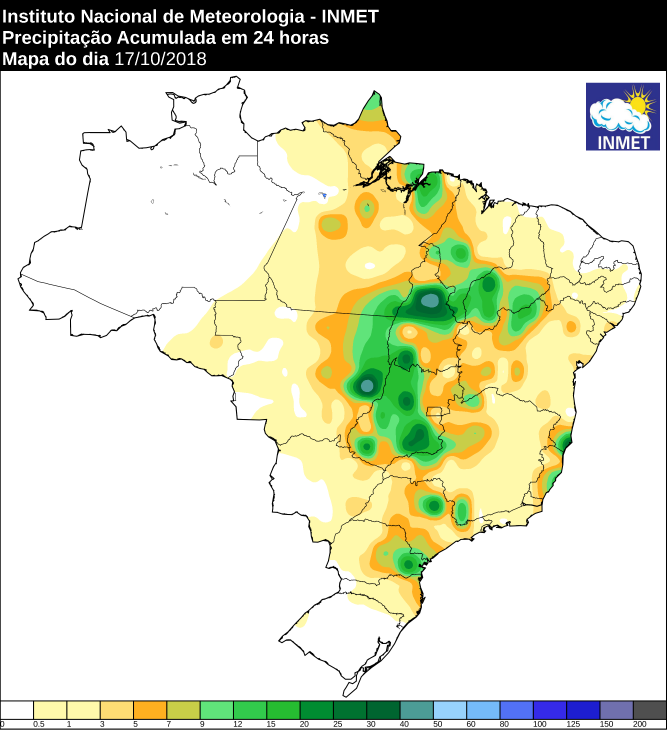 A região do Matopiba registrou acumulados expressivos nas últimas 24 horas, conforme mostram mapas do Inmet (Instituto Nacional de Meteorologia). As precipitações ainda seguem nos próximos dias na região, mas a irregularidade permanecerá. No Sul, mais tempestades são previstas nesta quinta-feira (18).
