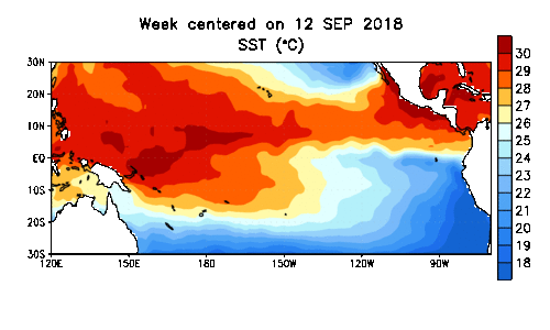 "A previsão oficial aponta a formação de um El Niño fraco, com a expectativa de que a circulação atmosférica acabe por unir com o anômalo calor equatorial do Pacífico", disse o Centro em sua previsão mensal para o El Niño. Para a primavera do próximo ano no hemisfério Norte, há chance de 55% a 60% de El Niño se formar.