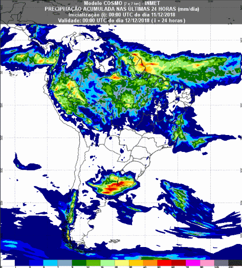 De acordo com o modelo Cosmo do Inmet, instabilidades serão vistas sobre a região Sul do Brasil de forma mais generalizada apenas no início da próxima semana. No entanto, apenas no dia 18 de dezembro é que uma condição de precipitações mais volumosas retorna para o estado do Paraná.