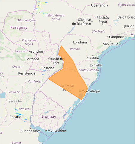 Aviso para as áreas: Oeste Catarinense, Encosta Do Sudeste, Serra Do Sudeste, Depressão Central, Encosta Inferior Do Nordeste, Encosta Superior Do Nordeste, Campos De Cima Da Serra, Planalto Médio, Missões, Alto Uruguai, Central Paranaense, Norte Paranaense, Oeste Paranaense, Sudoeste Paranaense, Sul Paranaense, Litoral Gaúcho, Meio-Oeste Catarinense