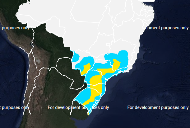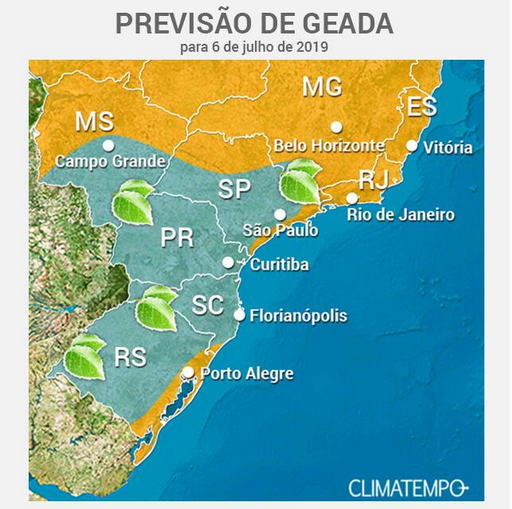 Veja o mapa das áreas com previsão de geada no dia 06 de julho: