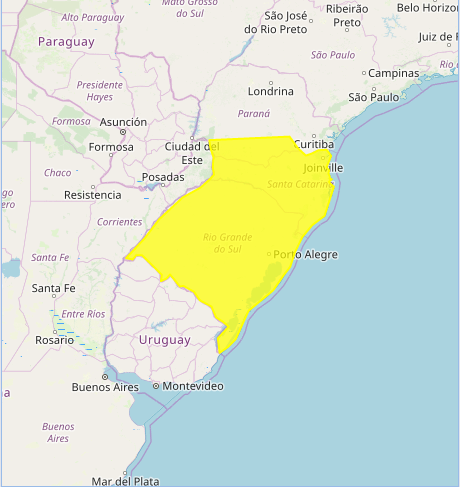 Aviso para as áreas: Planalto Norte Catarinense, Campanha, Metropolitana De Curitiba, Oeste Catarinense, Vale Do Itajai, Grande Florianópolis, Planalto Sul Catarinense, Litoral Sul Catarinense, Encosta Do Sudeste, Serra Do Sudeste, Depressão Central, Encosta Inferior Do Nordeste, Encosta Superior Do Nordeste, Campos De Cima Da Serra, Planalto Médio, Missões, Alto Uruguai, Central Paranaense, Oeste Paranaense, Sudoeste Paranaense, Sul Paranaense, Litoral Gaúcho, Meio-Oeste Catarinense, Litoral Norte Catarinense