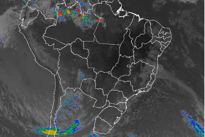 Imagem de satélite nesta quinta-feira (15) em todo o Brasil - Fonte: Inmet