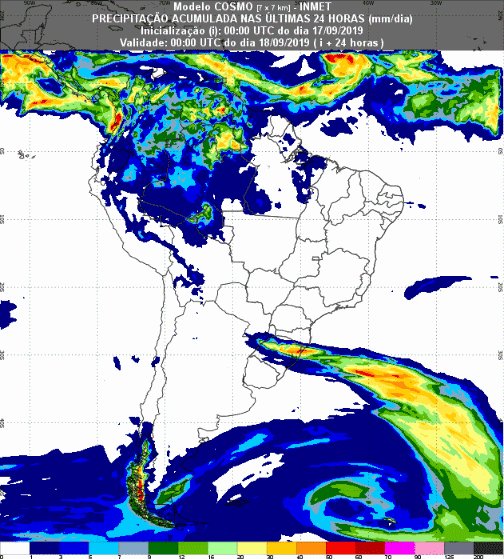 De acordo com o mapa de previsão estendida do centro de previsão da Administração Oceânica e Atmosférica Nacional (NOAA, na sigla em inglês), no período de 17 até 25 de setembro, as chuvas mais volumosas ocorrem em áreas da região Norte, Sul, Sudeste e pontos da região Nordeste.