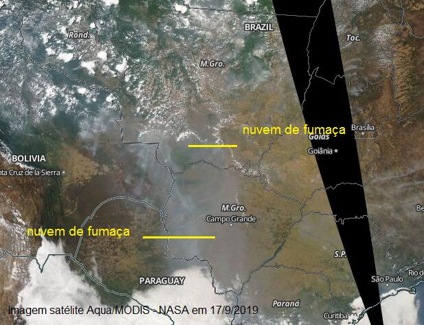 Fumaça sobre Mato Grosso e Mato Grosso do Sul em 17/9/2019 - Fonte: Climatempo
