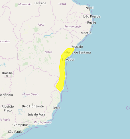 Aviso para as áreas: Nordeste Baiano, Sul Baiano, Recôncavo Baiano, Sudoeste Baiano