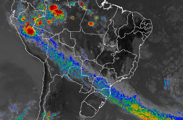 Imagem de satélite nesta segunda-feira (07) em todo o Brasil - Fonte: Inmet