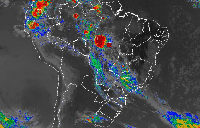 Imagem de satélite nesta terça-feira (08) em todo o Brasil - Fonte: Inmet