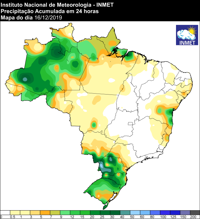 Confirmando as previsões, nas últimas 24 horas os volumes mais expressivos de chuvas foram registradas na região sul do país, onde choveu nos três estados.