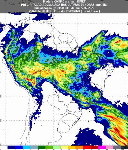 O modelo Cosmo indica precipitação entre 20 e 30 milímetros no sul de Minas Gerais. No leste do estado as chuvas podem acontecer de maneira mais expressiva, com acumulados de até 50 milímetros. No Espírito Santo há previsão para todo o estado, sendo os maiores volumes esperados para o oeste do estado. Ainda no Sudeste continua chovendo no estado de São Paulo nas próximas 24 horas, porém com volumes mais baixos para a Capital. De acordo com a Climatempo, nesta quinta-feira (27) as áreas de instabilidade avançam para o interior do estado.
