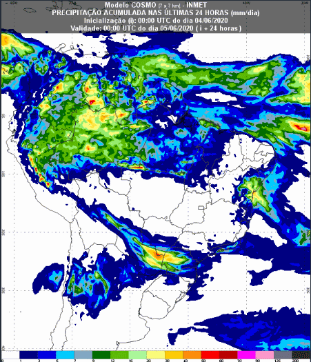 Veja o mapa de previsão de precipitação para as próximas 93 horas em todo o Brasil: