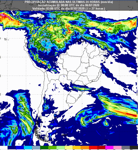 Veja o mapa de previsão de precipitação para as próximas 93 horas em todo o Brasil: