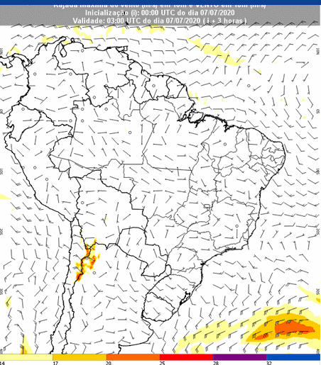 Veja o mapa de previsão de atuação do ciclone nas próximas horas: