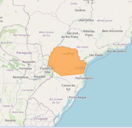Já na região sul, o alerta de tempestade abrange todas as áreas do Paraná. "Chuva entre 30 e 60 mm/h ou 50 e 100 mm/dia, ventos intensos (60-100 km/h), e queda de granizo. Risco de corte de energia elétrica, estragos em plantações, queda de árvores e de alagamentos", confirma o Inmet.
