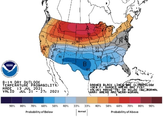 Segundo o último boletim diário do Commodity Weather Group (CWG), para julho o stress causado pelas poucas chuvas e pelas altas temperaturas deverá alcançar cerca de 15% das áreas de soja e milho do Meio-Oeste americano. Os estados mais afetados pelas adversidades continuam sendo os do extremo norte e mais a oeste dos EUA, como as Dakotas, Minnesota, Nebraska, Iowa e Wisconsin.