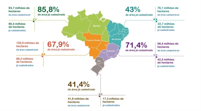 Os números demonstram que 70,29% da área passível de cadastro no país já está inscrita.