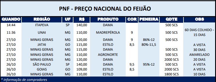Acompanhe abaixo a última atualização das vendas nas fontes captadas pelo Clube Só Feijão Ibrafe.