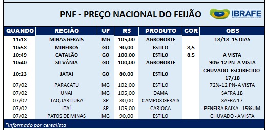 Na parte da manhã de hoje aconteceram alguns negócios que foram reportados no Clube Só Feijão mas há uma expectativa que durante a tarde possa se repetir o fenômeno de ontem quando aconteceram a maior parte dos negócios. Preços estáveis mercado já começa a trabalhar um pouco mais lento ou administrando a logística que os feriados impõe.