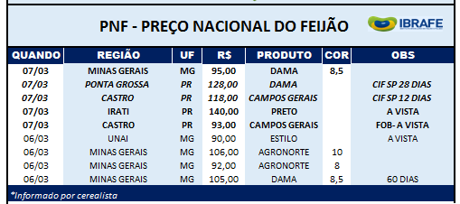 O mercado nem reagiu e já há apostas de quanto vai pegar. Arapuca que se arma para os mais incautos. Após perderem muito no final do ano passado, diversos compradores que especulam começam a se alvoroçar na tentativa de reaver seu capital. Os produtores mais atentos vão vendendo. A média de preços não é boa, mas apostar com estoques altos tem um risco grande. Aqueles que dividem a produção e vão vendendo podem alcançar a qualquer momento um ganho razoável, porém precisam estar muito atentos, ele poderá acontecer muito rapidamente. Já há poucos lotes de Feijão novo sendo colhido no Paraná e em Santa Catarina e, na sequência, em Vacaria. Nada ainda que assuste o mercado. Nos últimos anos, o Feijão colhido nesta época tem alcançado um preço médio melhor do que o negociado em janeiro e em fevereiro. Ontem um bom volume foi negociado durante o dia, mas manteve os níveis entre R$ 90/110 em Minas Gerais e em Goiás.