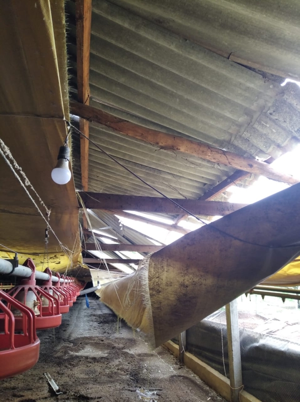 "O aviário que caiu foi só um, mas outros foram destelhados em partes. Neste que desabou, morreram 14 mil aves, mas ninguém da família proprietária da granja se feriu", disse.