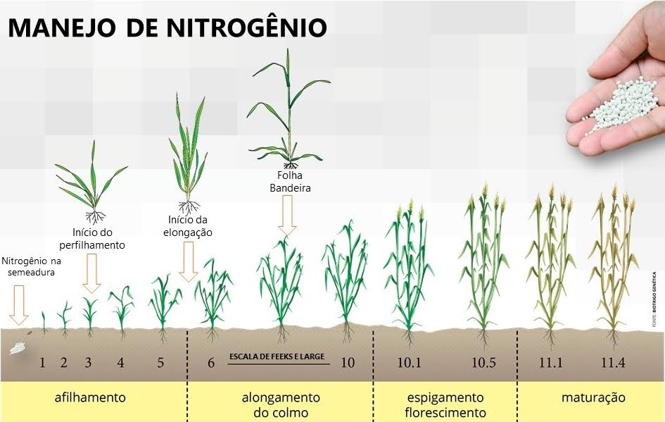 Fases em que o trigo responde a adubação nitrogenada na produtividade - Imagem: Biotrigo