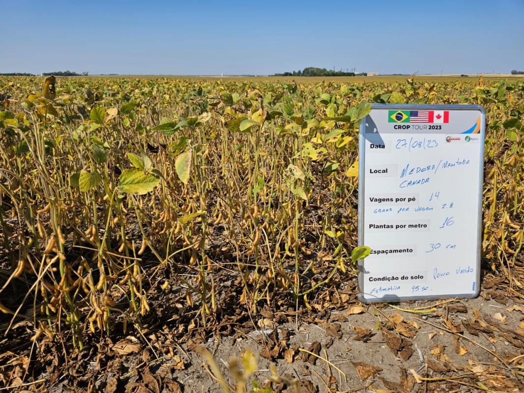 As primeiras lavouras de soja e milho canadenses visitadas pelo Crop Tour Grupo Labhoro e Notícias Agrícolas deixaram evidentes os efeitos do calor e da seca para a safra 2023/24. Os campos estão bem castigados e, como explica o diretor geral do Grupo Labhoro, Ginaldo Sousa, a estimativa de uma produção de soja de 6,5 milhões de toneladas dificilmente será alcançada.