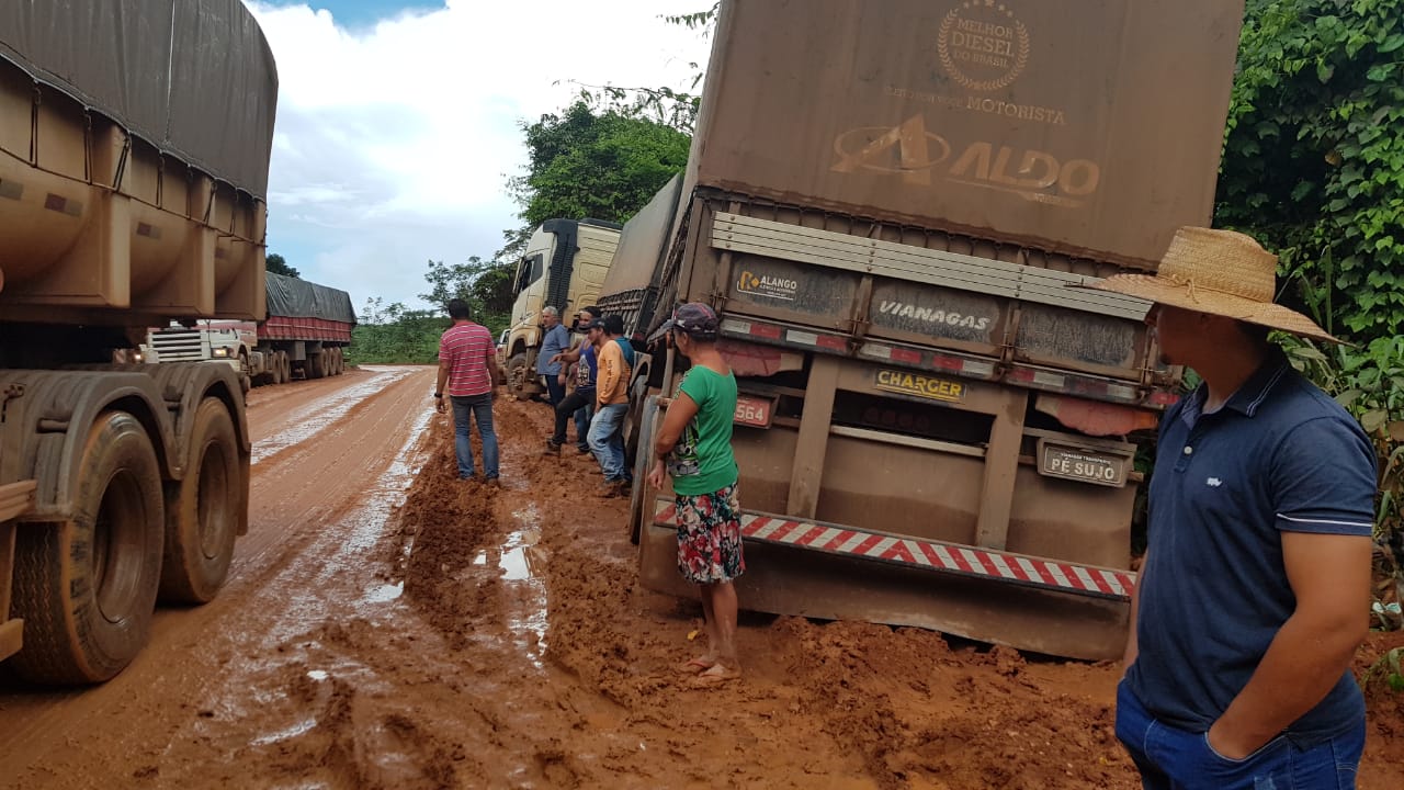 O volume de caminhões tornou-se mais intenso na região neste ano. Além disso, o trecho tem sido degradado pelas intensas chuvas, o que dificulta a manutenção da trafegabilidade dos caminhões que saem do Mato Grosso com destino aos portos de Miritituba/PA.