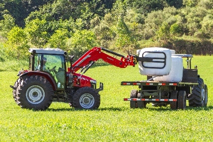 A tecnologia presente no sistema de instalação dos carregadores frontais MF V Series permite que o operador conecte ou desconecte o implemento com facilidade e rapidez, sem necessidade do uso de ferramentas. Voltados para produtores que utilizam o trator para múltiplas tarefas, os carregadores frontais auxiliam nas atividades de pecuária, agricultura e manutenções da fazenda. São três tipos de implementos, que oferecem soluções para o manuseio de terra, transporte de fardos de feno, e carregamento de sementes e adubo, otimizando o tempo e contribuindo para o aumento da produtividade no campo.