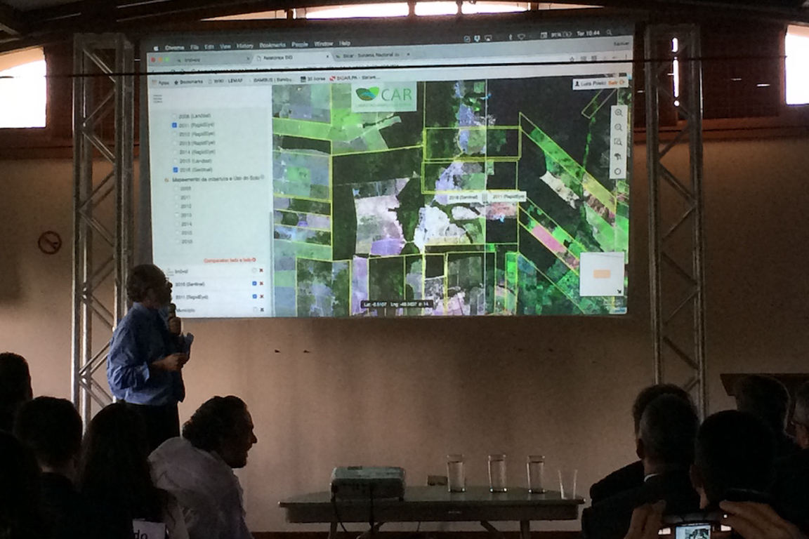 O diretor do Serviço Florestal, Raimundo Deusdará, mostra como funciona interface pública do CAR. Foto: Claudio Angelo/OC
