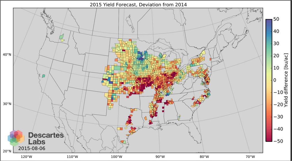Imagem de satélite indica piora na safra de milho 2015/16 dos EUA - Fonte: Descartes Labs