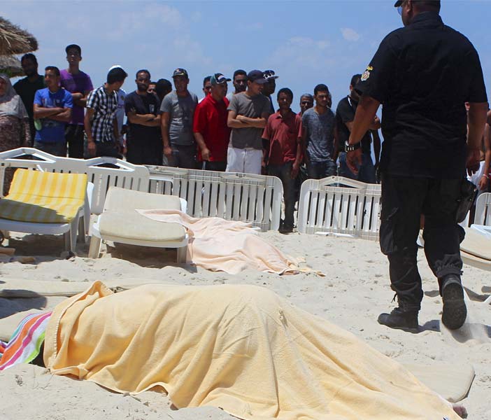 Ataque a hotel da Tunísia mata ao menos 37, incluindo turistas europeus. Corpo de turista morto por homem armado perto de hotel em Sousse, na Tunísia (Fonte: Reuters)