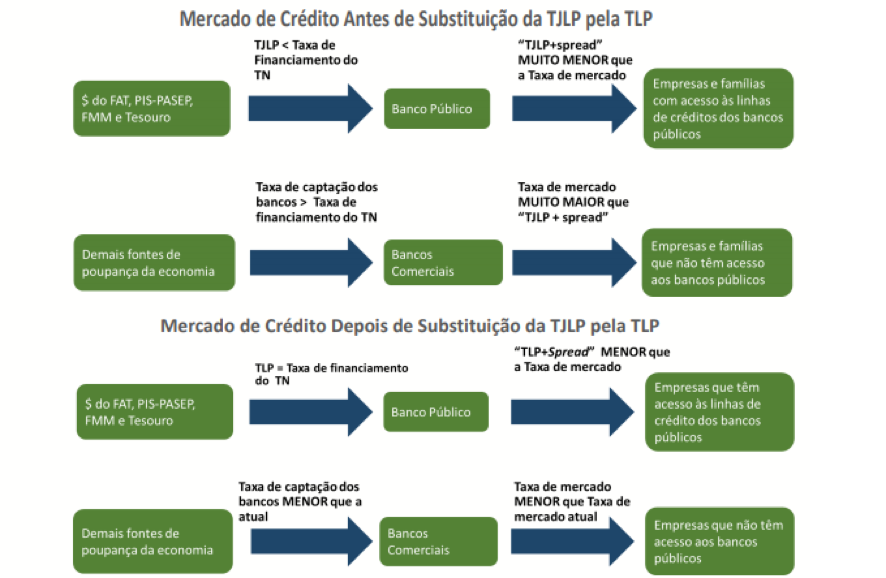 Com a TLP, os juros do BNDES continuarão menores que os juros bancários, mas a distorção acima tende a diminuir. Longe de ser perfeito, mas já é uma melhoria.
