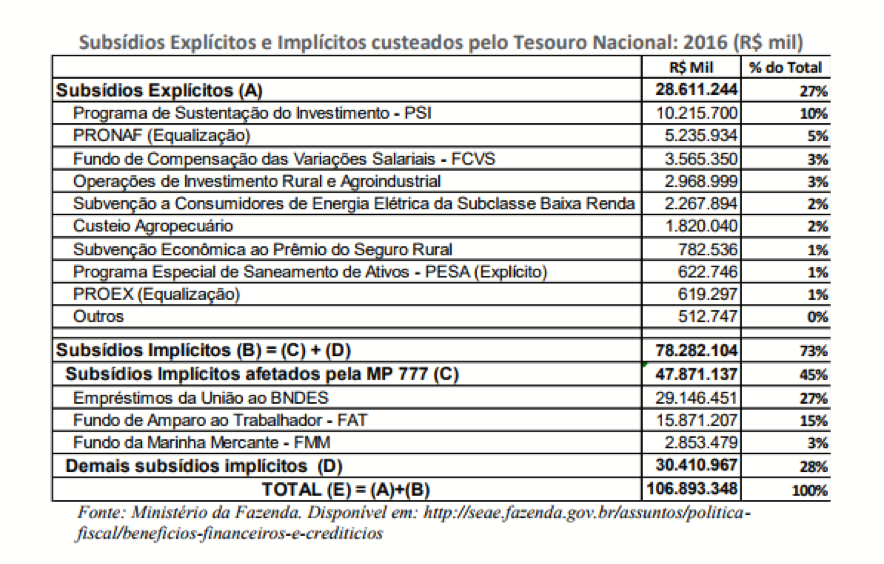 Consequentemente, o subsídio implícito deixa de assistir, pois o governo estará recebendo a mesma taxa que paga na sua dívida.