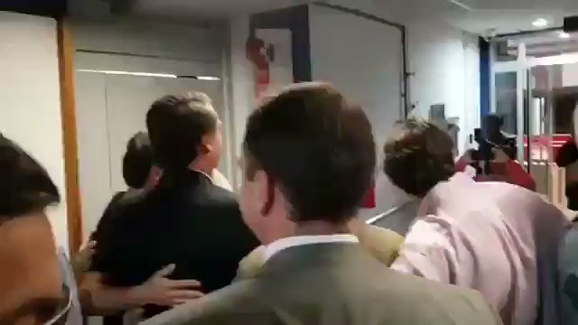 Aliado de Bolsonaro, o senador Magno Malta (PR) registrou momento em que funcionários da emissora tiraram foto com o pré-candidato do PSL. Assista: