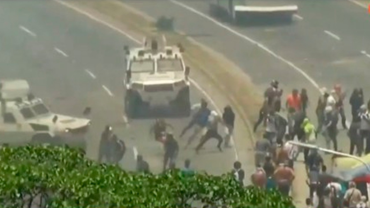 >> Veículo da Guarda Nacional da Venezuela atropela manifestantes em Caracas