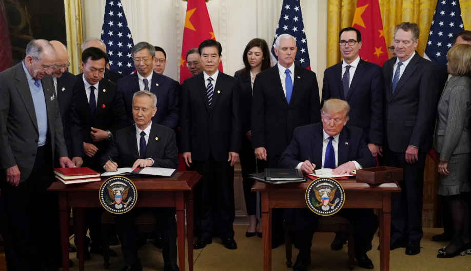 O pacto, que visa reduzir as tensões após quase dois anos de guerra comercial, inclui um compromisso da China de comprar ao menos 12,5 bilhões de dólares adicionais em bens agrícolas norte-americanos em 2020, além de pelo menos 19,5 bilhões de dólares adicionais em 2021. Ambos os valores têm como baliza os níveis de 2017, de 24 bilhões de dólares.