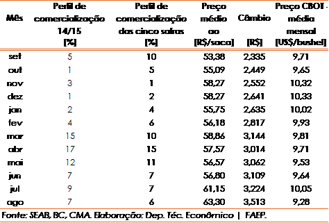 A safra 2014/15 foi marcada por boas produtividades, de modo geral, e um perfil de comercialização diferente em relação à média dos últimos cinco anos.
