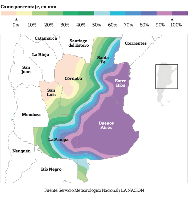 O maior inconveniente, segundo o boletim, não são apenas as chuvas, mas as águas que vêm de províncias ao norte como Córdoba e Santa Fe, o que vem gerando conflitos interprovinciais e entre partidos.