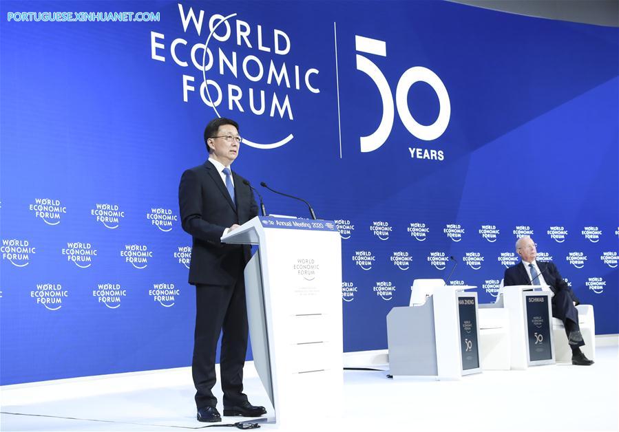 Vice premiê Han Zheng discursa no Fórum Econômico Mundial, em Davos -  Foto: Xinhua/Pang Xinglei