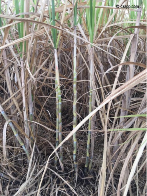 A estimativa da trading é de uma moagem de cana acumulada de 86,3 milhões de toneladas de cana, mas ainda cerca de 17 milhões de t abaixo de 2020/21. "A produtividade agrícola no mês de abril também veio menor que nossas expectativas, em 73 t/ha - 13% inferior ao mesmo período na safra passada" (Imagem à esquerda mostra canavial na região de Frutal (MG) com desenvolvimento afetado pela seca).