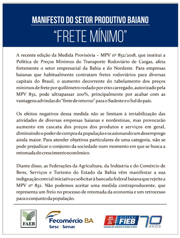 Abaixo, veja a nota técnica da CNA sobre os reflexos do tabelamento dos fretes:
